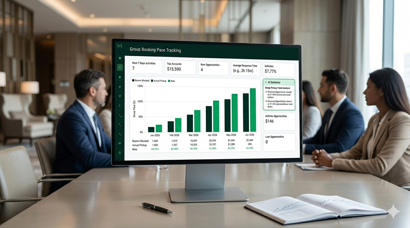Group pace built only from confirmed bookings tells you where you’ve been. Group pace that incorporates pipeline-stage opportunities — with probability weighting by stage — tells you where you’re going. The difference is entirely about how well the sales team captures and maintains their deal data.