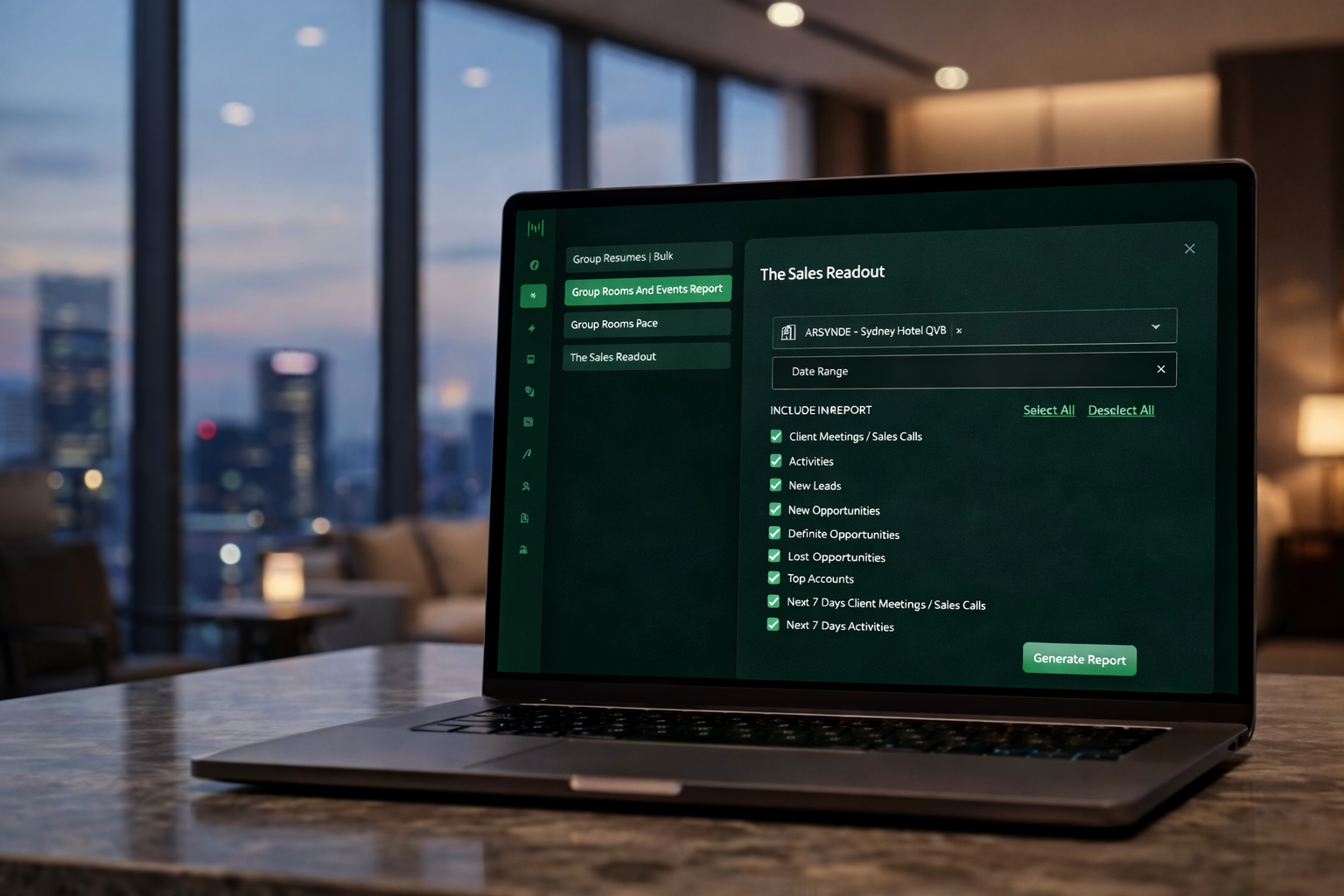 Before this update, every Sales Readout included everything. Now you tailor it in seconds before generating. This is particularly useful for multi-property operators running Matrix across a portfolio. Each property has a different reporting audience. The customization applies per report, per meeting.